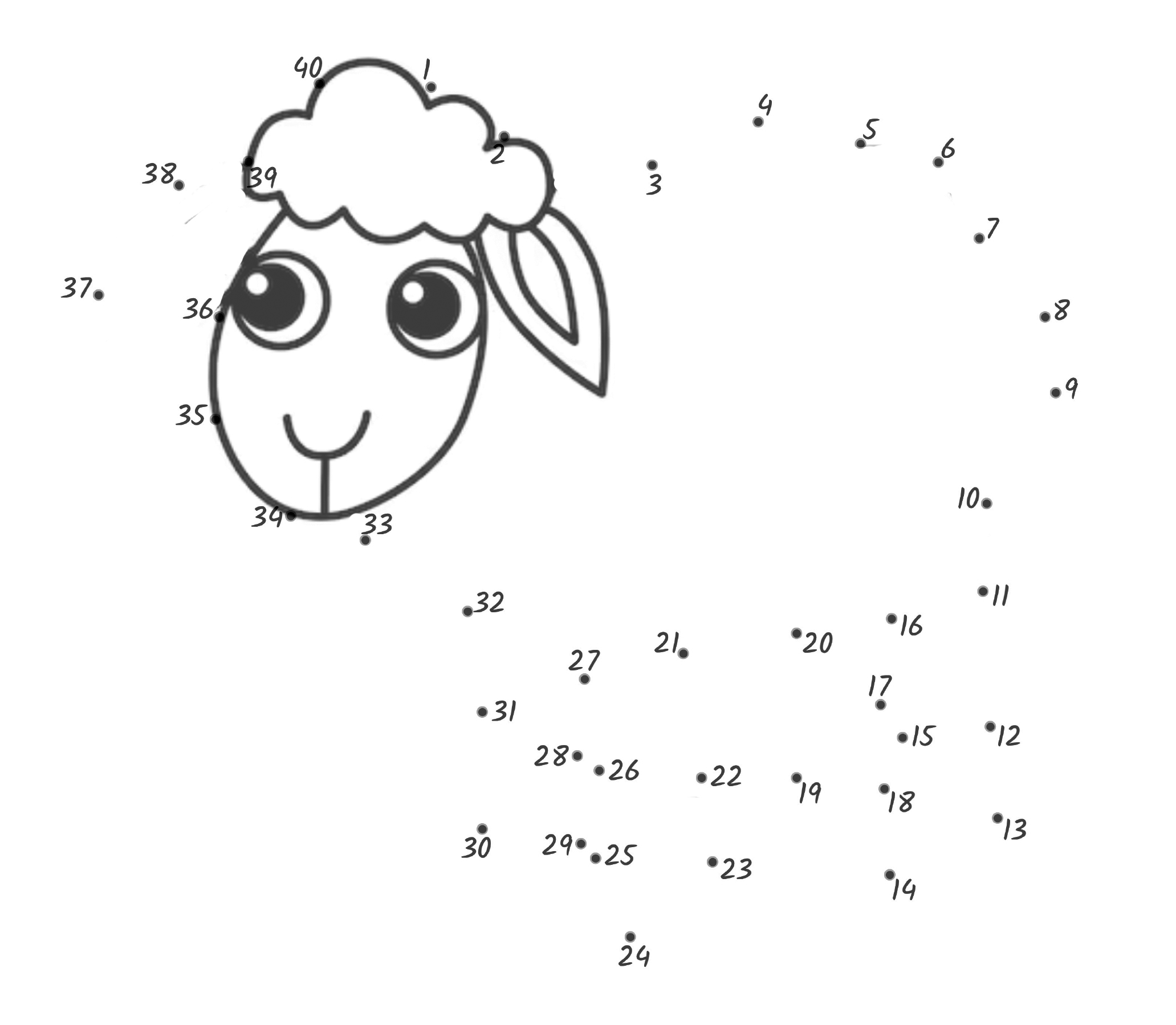 Download and print out the image below, and then complete it by tracing a line from number 1 to number 40!